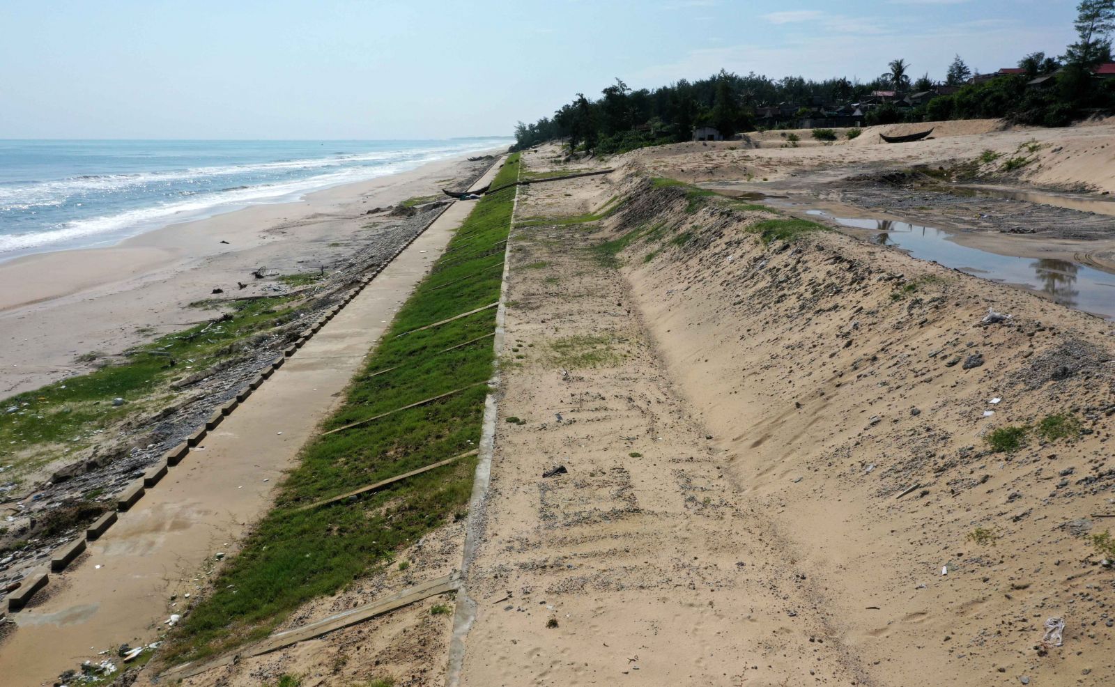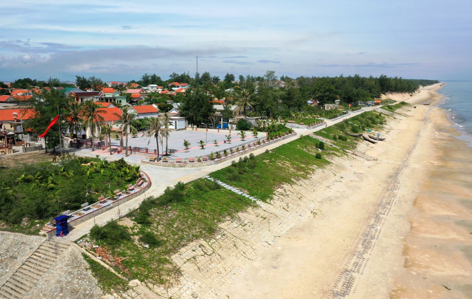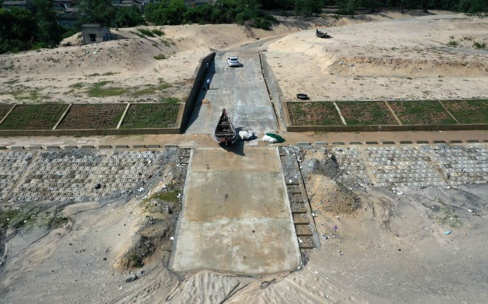 Cùng với mái dầm khung trồng cỏ, đường công vụ, dốc trượt âu thuyền kè Quảng Công cũng đã hoàn thiện, giúp ngư dân thuận lợi trong việc tiếp tục nghề biển