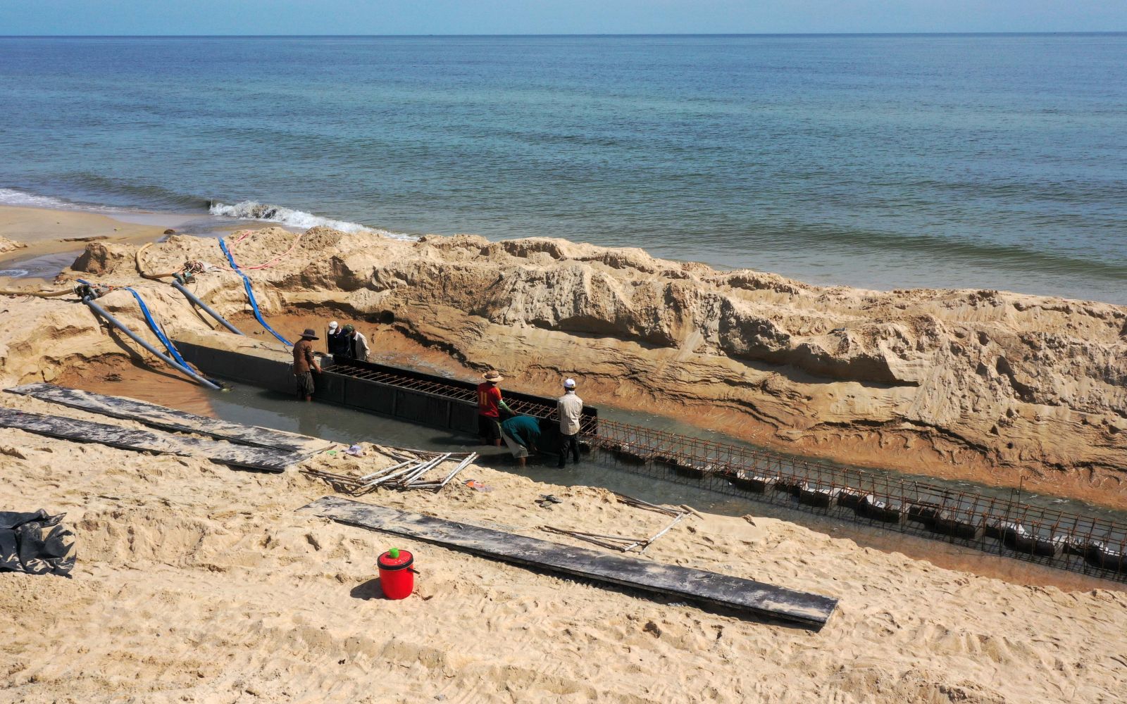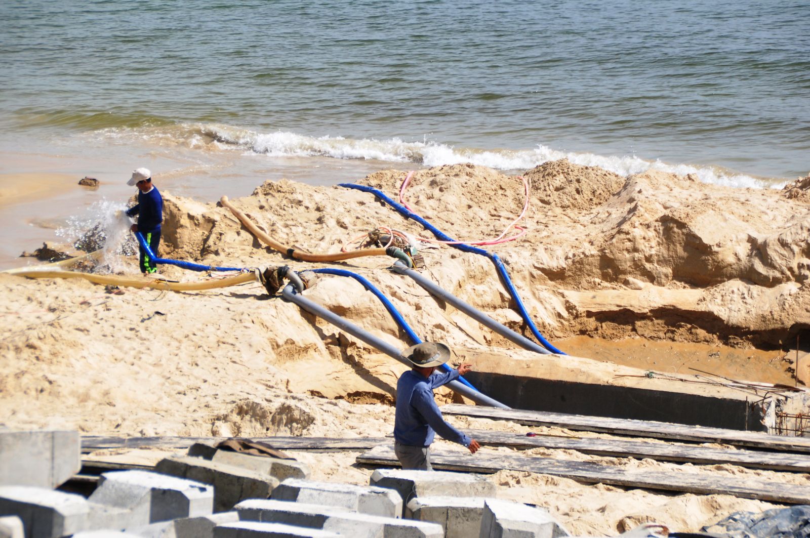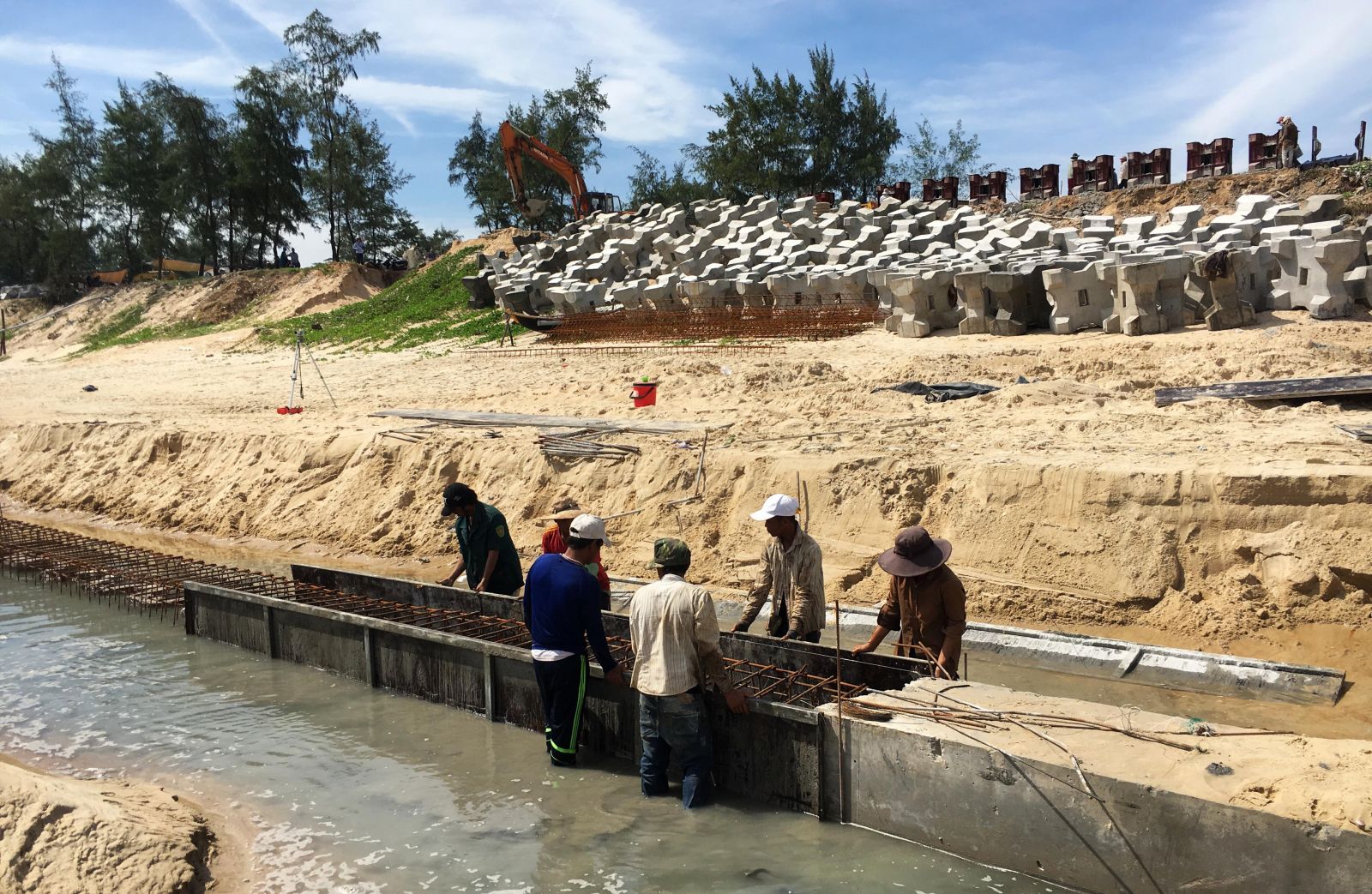 Công trình đang triển khai thi công cả mũi từ dưới bờ biển và lên trên bờ