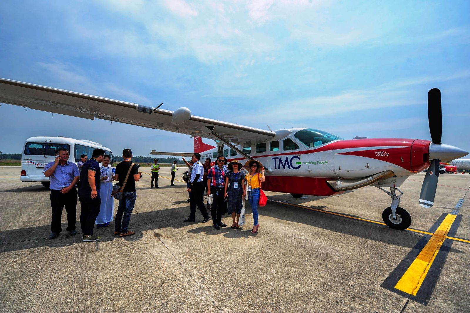 Những vị khách đầu tiên chụp ảnh lưu niệm với máy bay Cessna Grand Caravan208B- EX