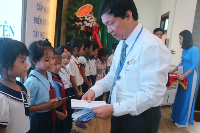 Ông Trương Công Nam tặng quà cho các cháu có hoàn cảnh khó khăn
