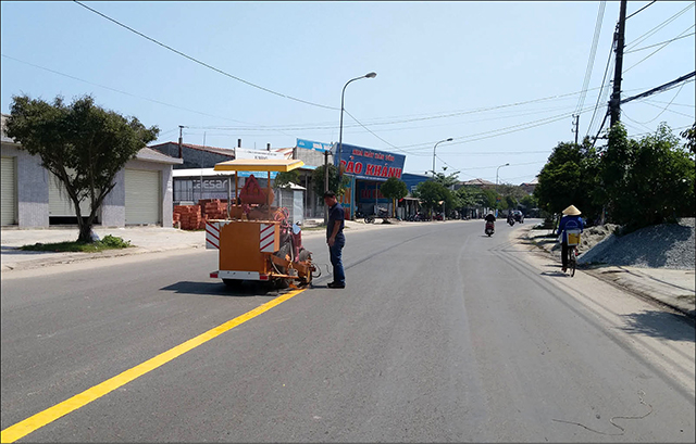 Công ty CP Quản lý và Xây dựng Đường bộ Thừa Thiên Huế đã yêu cầu đơn vị thi công kẻ vạch sơn nhằm đảm bảo an toàn giao thông