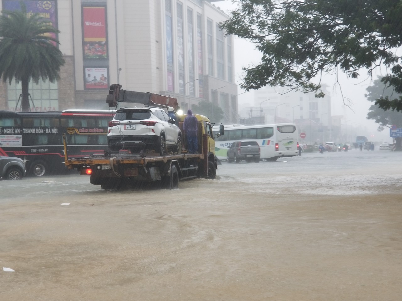 Anh N.T.M, ở tại một chung cư trên địa bàn phường Xuân Phú cho biết, dù đã biết trước về dự báo mưa to và đã đưa xe Mazda ra khu vực đường dẫn cầu Phát Lát để tránh lũ nhưng mực nước lên quá cao, phần đầu xe bị nước ngập quá nửa và hư hỏng toàn bộ nội thất. Ngoài ra, tại một số tuyến như đường Đống Đa, Hùng Vương…phương tiện xe cẩu liên tục được thuê tới cứu hộ những xe ô tô bị mắc kẹt trong nước lũ.