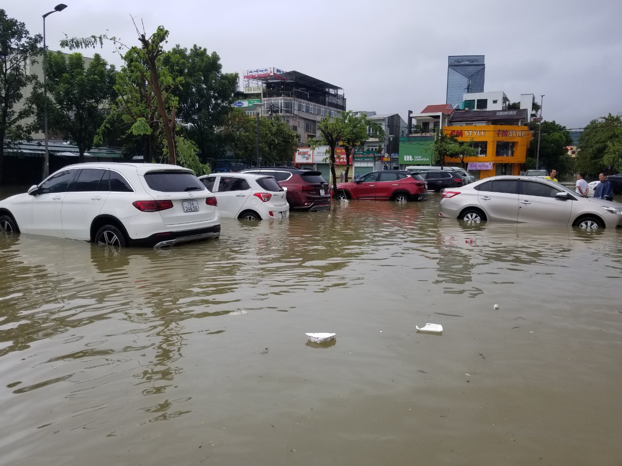 Hàng loạt ô tô được chủ xe mang đi tránh lũ trên các trục đường Tố Hữu, Võ Nguyên Giáp… bị ngập nặng do mực nước dâng cao và nhanh. Đặc biệt, tại khu vực trên cầu Phát Lát và công viên dọc đường Tố Hữu (trước UBND TP. Huế) thuộc địa bàn phường Xuân Phú, nhiều ô tô được đưa lên hai đường dẫn của cầu và công viên nhưng đều bị ngập nặng. Khu vực này người dân chủ yếu đi lại bằng thuyền máy.