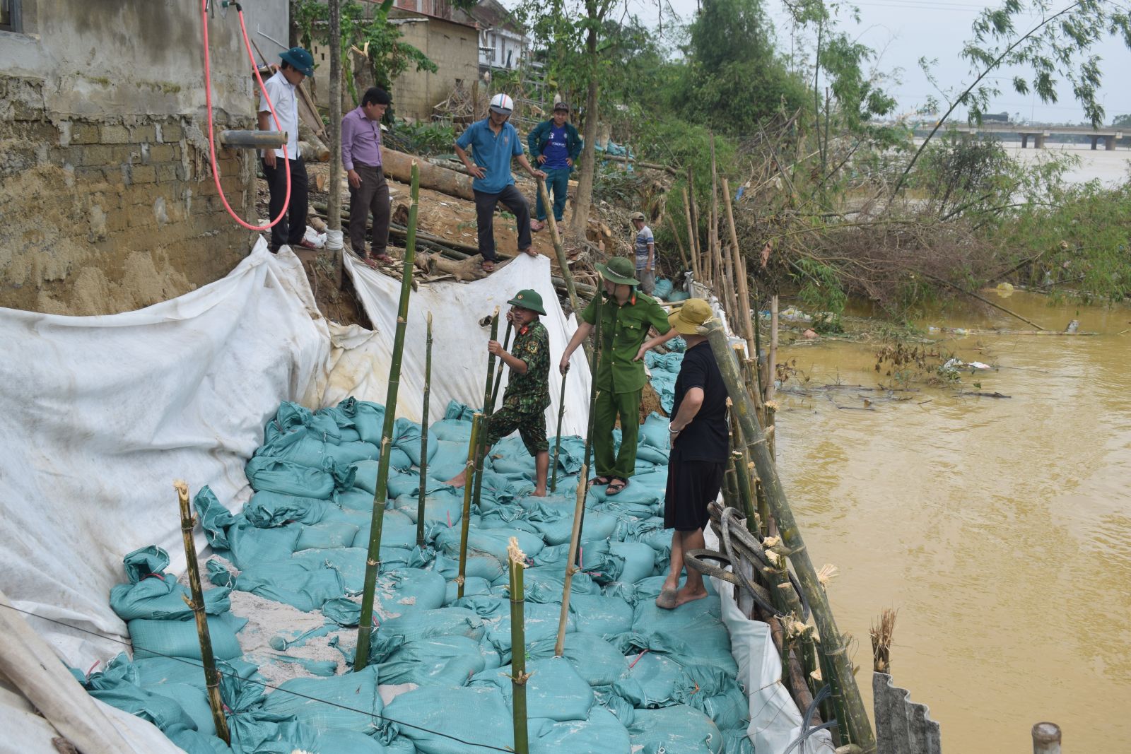 Các lực lượng gia cố vùng sông Bồ bị sạt lở
