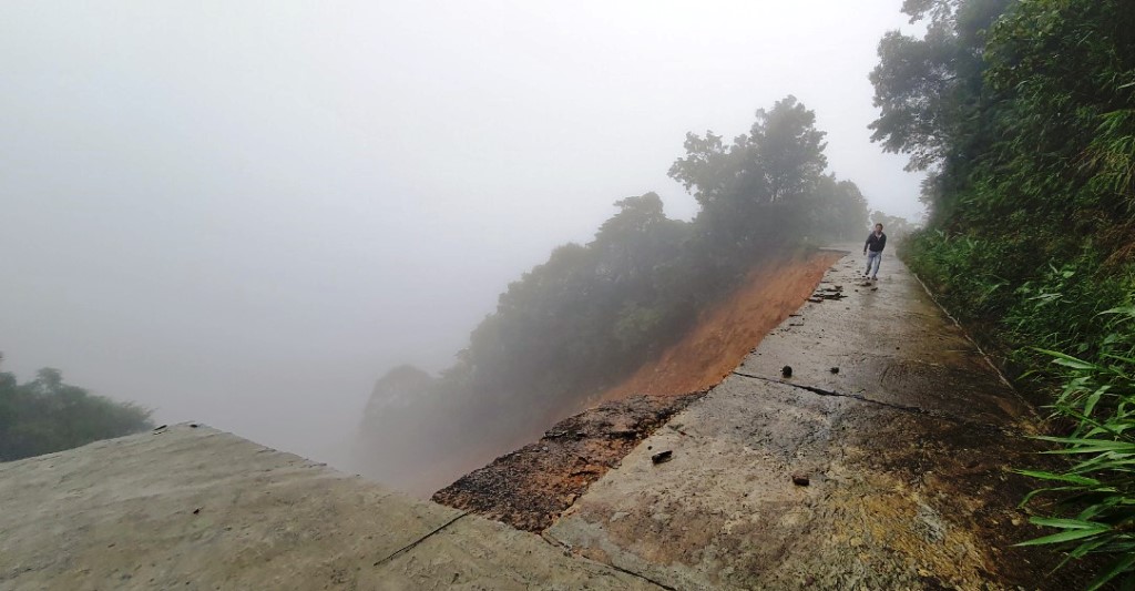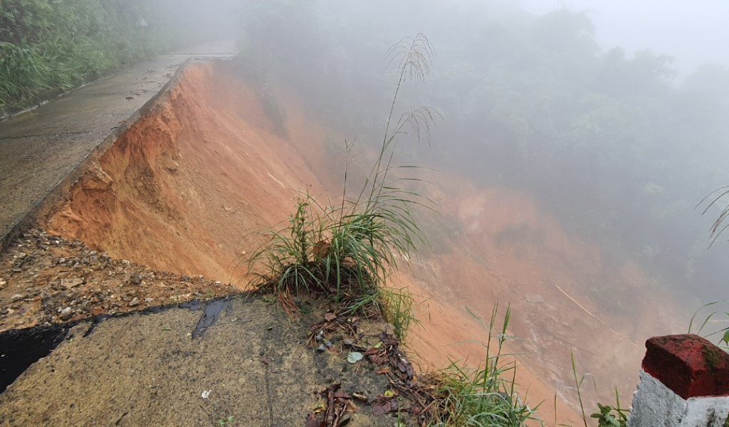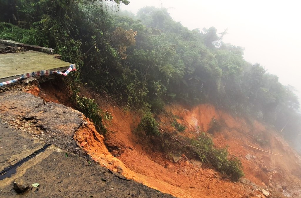 Sạt lở làm hư hỏng đường, ăn sâu vào phía vách núi