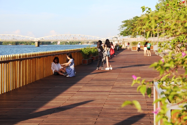 Theo ghi nhận của Thừa Thiên Huế Online, nhiều ngày qua, rất đông người dân hiếu kỳ tìm đến đường đi bộ dọc sông Hương khi những hình ảnh "check in" con đường này xuất hiện nhiều trên mạng xã hội trước đó.