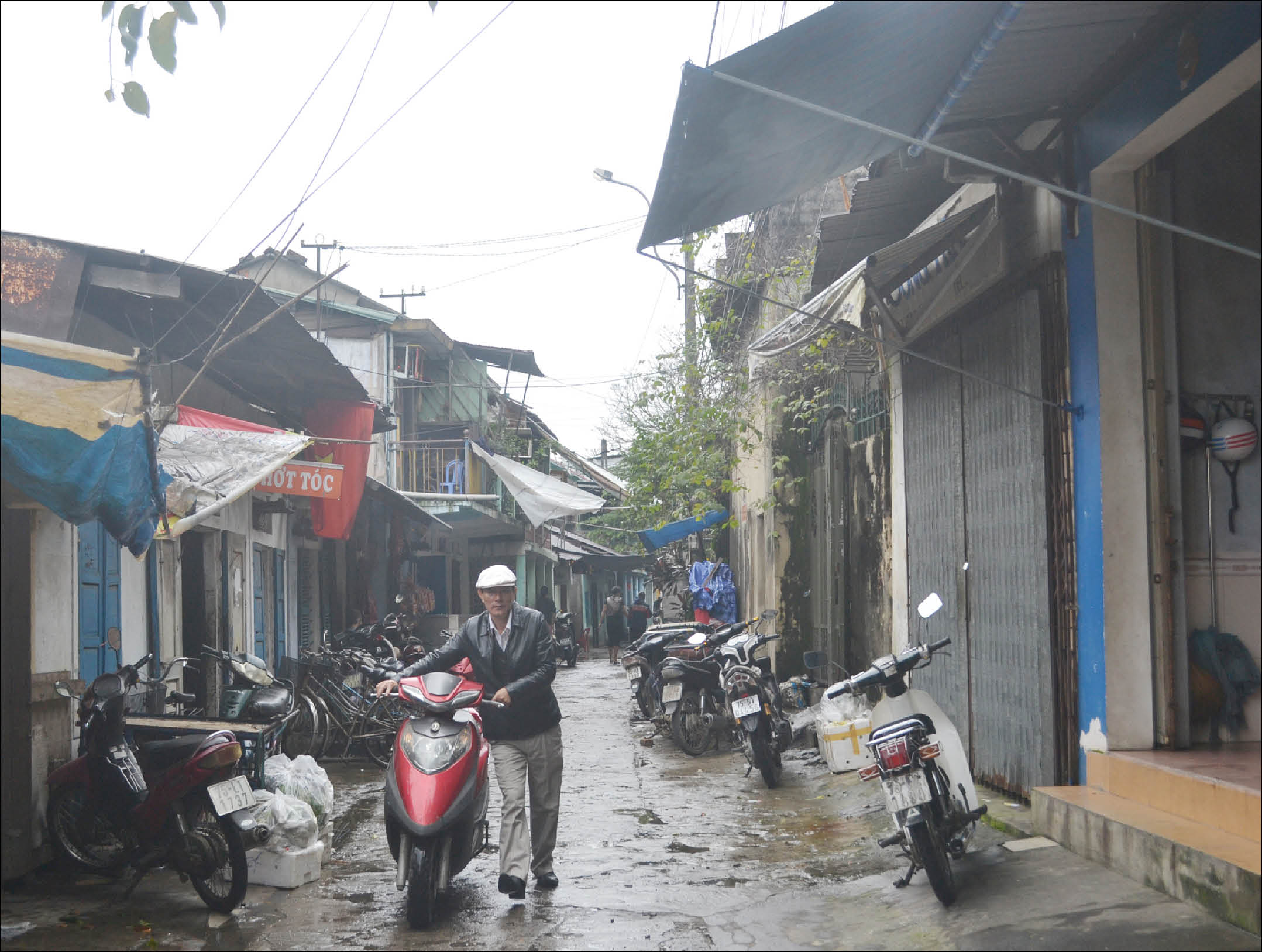 Đến đây, hẳn sẽ thấy được sự chật chội, bức bối, nhà nối nhà, vách sát vách. Con hẻm nhỏ chỉ đủ một xe máy lưu thông. Khi có xe ngược chiều hay gặp xích lô, người đi đường phải nép sách vát nhà dân mới tránh được. Con hẻm chung này vừa là đường đi, vừa là lòng lề đường, vỉa hè, nơi để xe, là không gian sinh hoạt chung, nhiều đoạn người dân dùng tấm bạt để che mưa càng khiến không gian thêm u ám, tù túng.