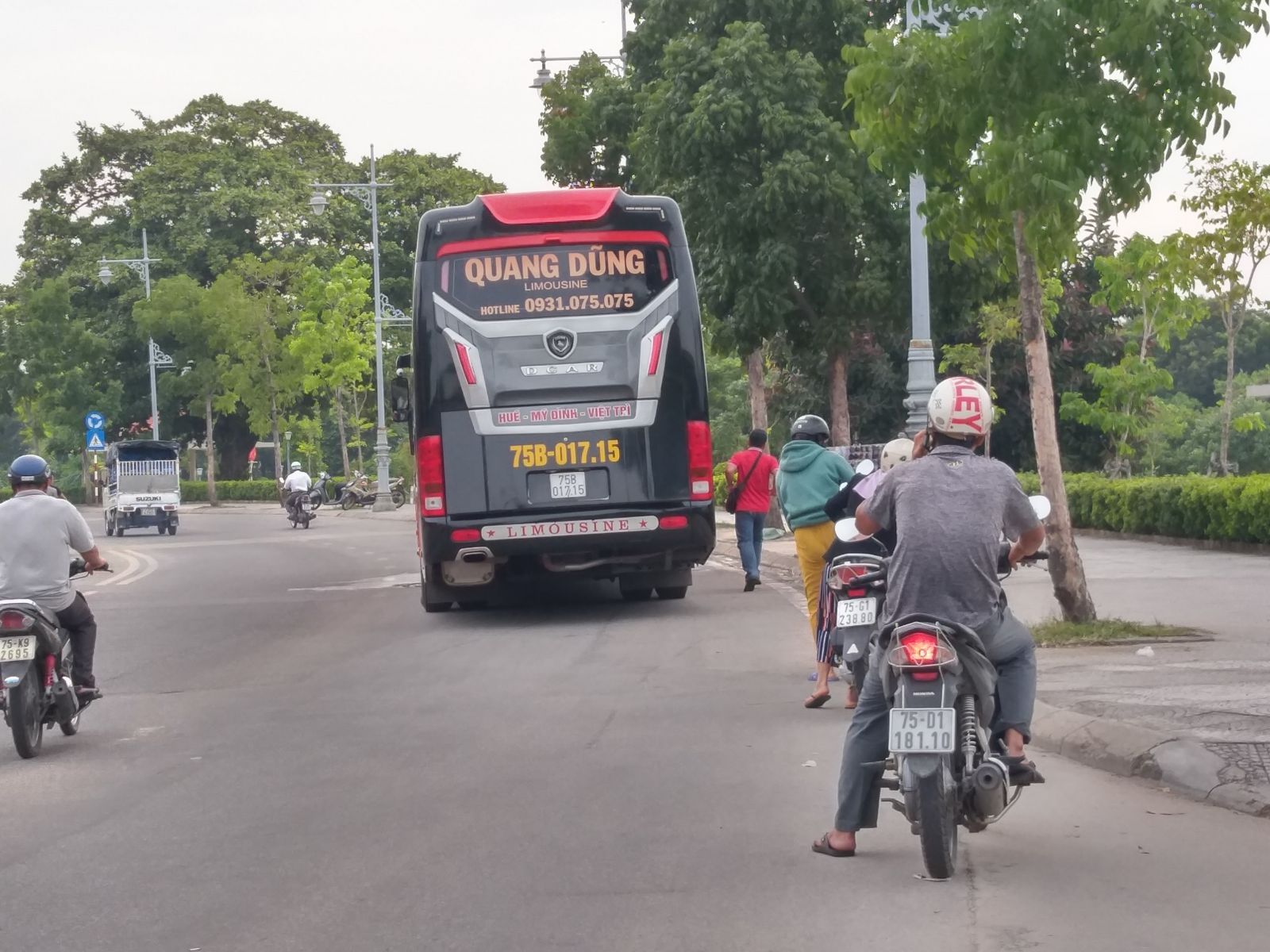 Khoảng 16 giờ ngày 16/8, xe mang BKS 75B.017-15 bắt đầu xuất phát ra đường Bà Triệu, vòng qua Nguyễn Huệ. Trên đường đi, qua các điểm đông người, xe ra rà tìm khách đã đặt chỗ trước. Có khi đang chạy trên đường Nguyễn Huệ, xe dừng hẳn cách biển cấm dừng, đỗ khoảng chục mét “vớt” khách rồi chạy thẳng. Khi xe đến trước điểm giao đèn đỏ giữa đường Phan Bội Châu và Nguyễn Huệ, xe dừng hẳn để đón thêm khách.