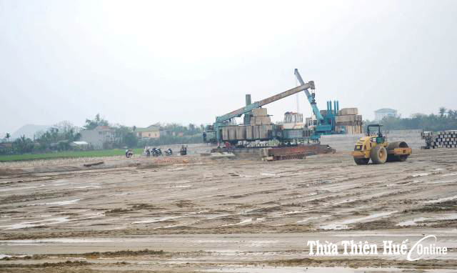 Tại địa điểm xây dựng công trình nhà máy xử lý nước thải ở phường An Đông (Huế), các loại xe cẩu, xe ủi, xe múc được liên danh nhà thầu phụ là Tổng công ty Đầu tư nước và Môi trường Việt Nam (Viwaseen) và Công ty TNHH Xây dựng và Thương mại Hải Thành tập kết, phục vụ thi công.