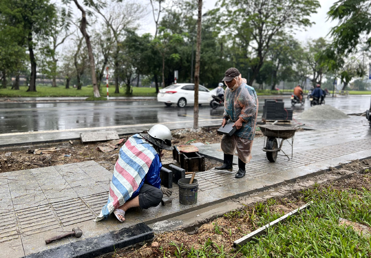 Thừa Thiên Huế Online ghi nhận không khí thi công trên các công trình bất kể tiết trời nắng mưa: