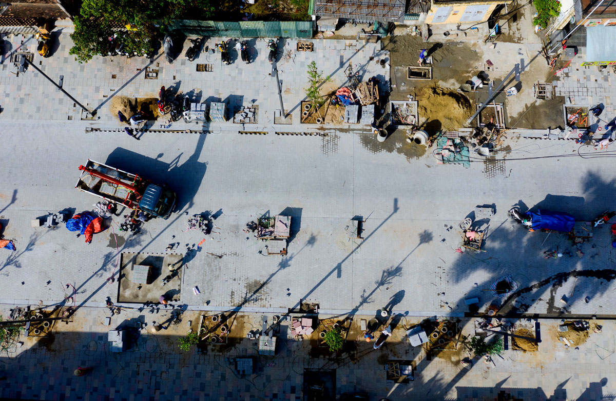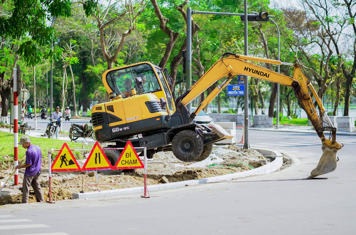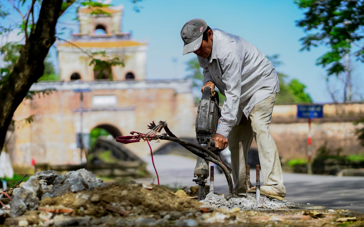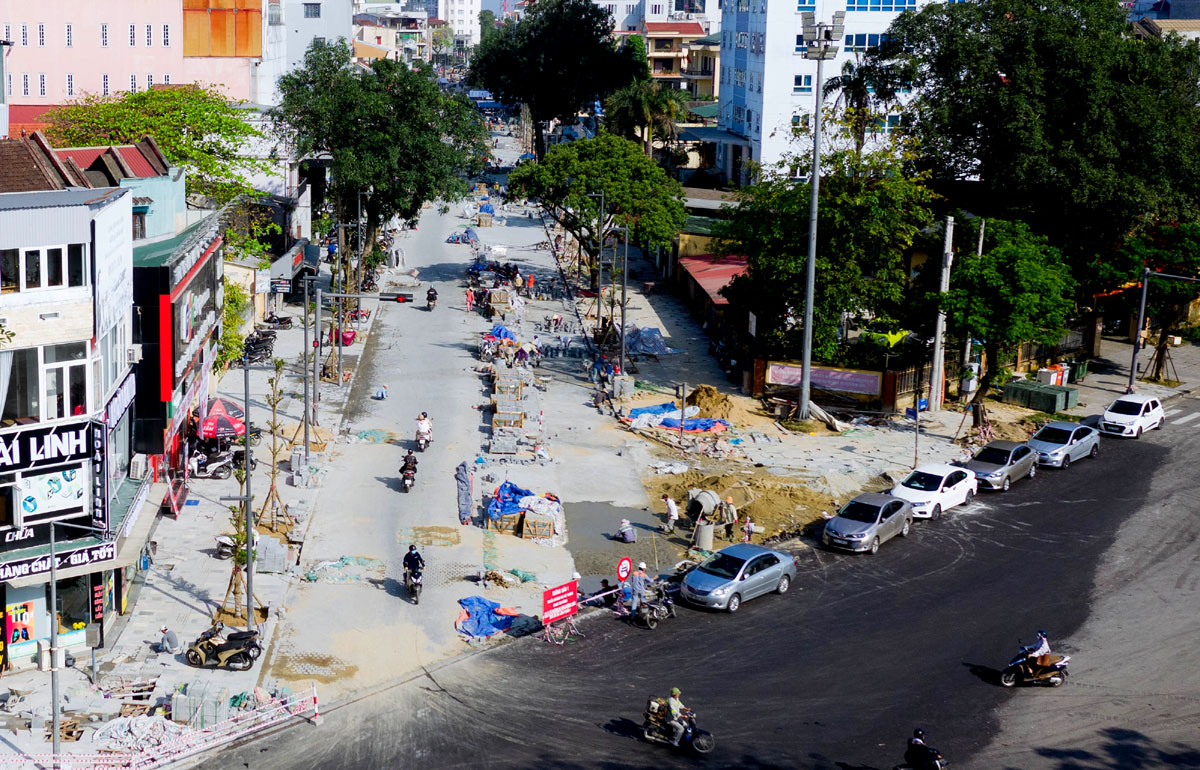 Không khí tất bật, khẩn trương rõ ràng nhất tại dự án chỉnh trang đường Hai Bà Trưng (TP. Huế). Theo tiến độ, đến ngày 31/12/2022 cơ bản xong các hạng mục chỉnh trang, hoàn trả mặt bằng và tổng dọn vệ sinh môi trường để người dân đi lại đón Tết Dương lịch. Nhà thầu chính của dự án bố trí 26 tổ thợ thi công ngày, đêm. Do công trình triển khai ở tuyến đường đô thị nhiều dân cư nên vừa thi công vừa đảm bảo an toàn giao thông, mỹ quan đô thị.