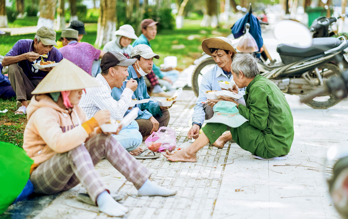 Tranh thủ ăn trưa, nghỉ ngơi tại công trình