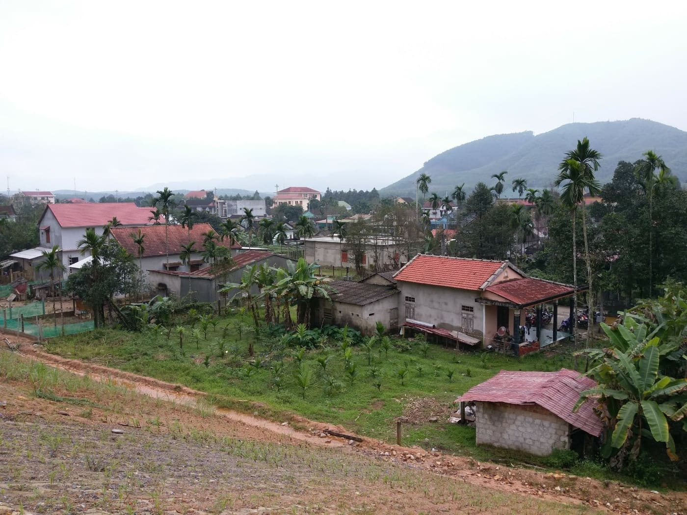 Mái nhà dân ở thị trấn Khe Tre (Nam Đông) ngang mặt đường cao tốc