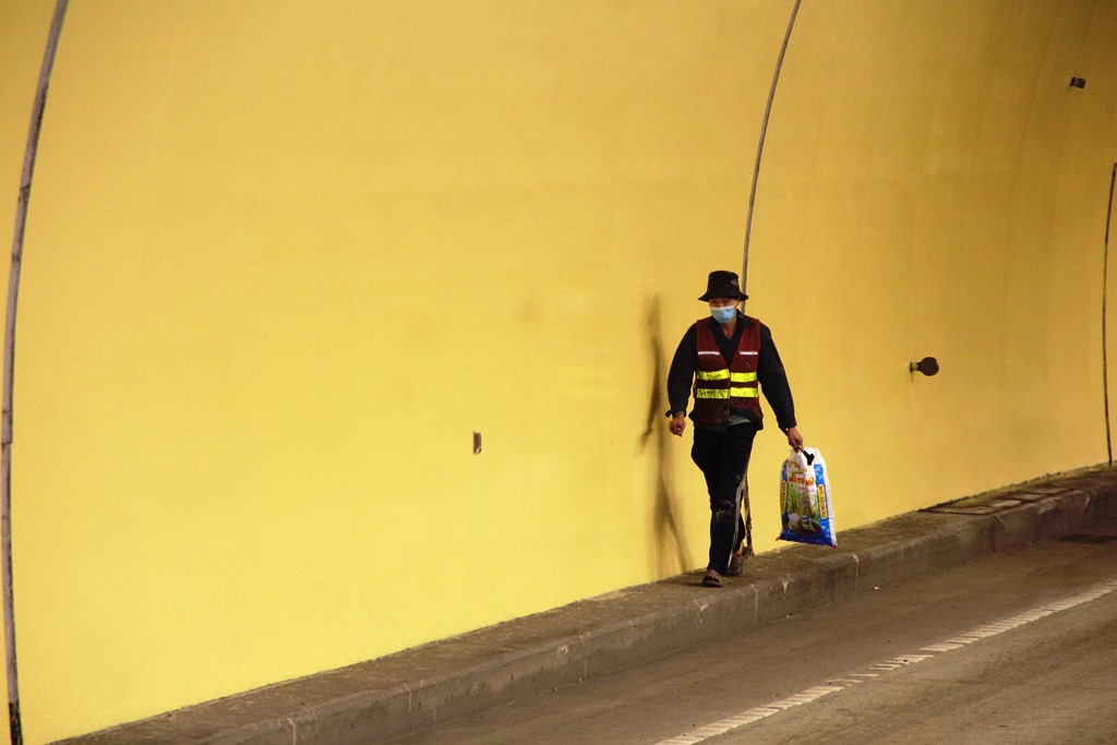 Công nhân lặng lẽ men theo dọc đường hầm để làm công việc của mình