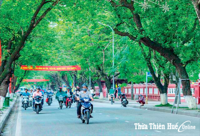 Hàng cây trên đường Lê Lợi - một trong những điểm nhấn cho không gian xanh ở Huế. Ảnh: Lê Tấn Thanh
