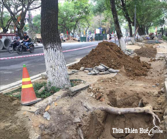 Đại diện đơn vị thi công cũng cho rằng, do mật độ cây xanh trên địa bàn TP. Huế khá lớn, trong khi hạ tầng kỹ thuật chưa đồng bộ, lòng đường hẹp, vỉa hè nơi có nơi không, do đó, khi thi công ở bất kỳ tuyến đường cũng khó tránh khỏi ảnh hưởng. Đa số cống thoát nước của dự án đều có đường kính, độ sâu lớn, khi đào đường dù đã ứng dụng công nghệ tiên tiến nhất, có sự giám sát của các cơ quan chức năng, song cũng khó tránh khỏi sụt lún, ảnh hưởng đến cây xanh.