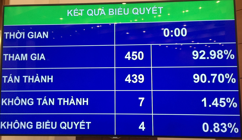 Với 439/450 đại biểu Quốc hội tham gia nhấn nút đồng ý, Quốc hội đã chính thức thông qua Luật Đầu tư công sửa đổi