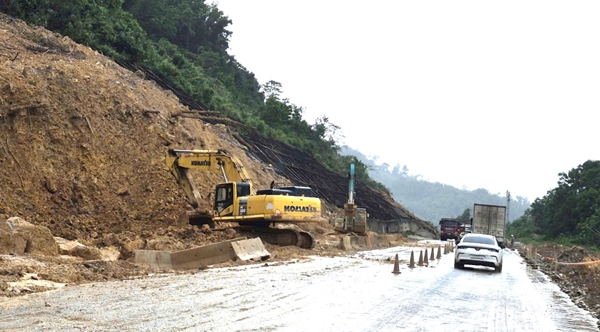 | Nhiều đoạn tuyến vẫn tiềm ẩn nguy cơ sạt lở do thời tiết mưa kéo dài. Ảnh: Văn Hiệp |