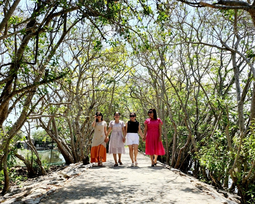| Khách du lịch tham quan Rú Chá (Hương Phong) |