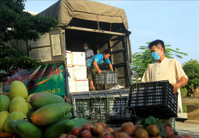 Vận chuyển nông sản từ tỉnh Sơn La đưa đến các điểm thiêu thụ tại thành phố Hải Phòng. Ảnh: An Đăng/TTXVN