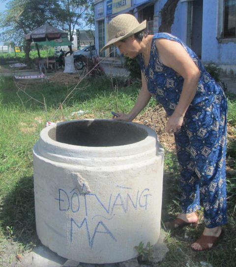 Sáng kiến này là của chị Hà, chủ nhà 105 khu D chung cư Hương Sơ. Chị Hà kể, từ khi tổ dân phố họp phổ biến kế hoạch của phường, chị đi đặt ngay cống bi bê tông để phục vụ bà con trong khu đốt vàng mã. Không tốn kém là bao, nhưng dùng chung được lâu dài.