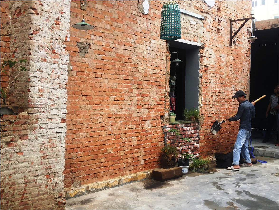 Theo đó, ngôi nhà 2 tầng nói trên nằm trong khuôn viên đất được Trung tâm Phát triển Quỹ đất TP. Huế cho ông Lê Nguyên Vũ (thị trấn Phong Điền, huyện Phong Điền) thuê để kinh doanh. Trong quá trình tiến hành chỉnh trang lại phục vụ cho việc kinh doanh quán cà phê, ông Vũ đã tự ý cải tạo bằng cách cạo bỏ đi lớp vôi vữa bên ngoài mảng tường gạch ở phía dưới tầng 1 của ngôi nhà.