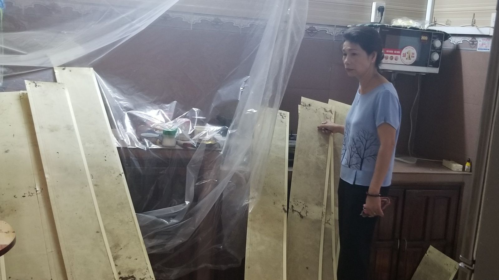 16h cùng ngày, Thanh tra Sở Xây dựng, UBND phường Vĩnh Ninh đã lập biên bản hiện trường. Cụ thể: Tại hiện trường, nhà bếp bà Hà - Liên sập trần nhựa, 2 xà gỗ diện tích 6,67m2. Tường nhà bếp và tường nhà vệ sinh có nhiều vết nứt, nguy cơ đổ sập nguy hiểm đến tính mạng con người. Đề nghị gia đình bà Hà không sử dụng nhà bếp, nhà vệ sinh để đảm bảo an toàn.
