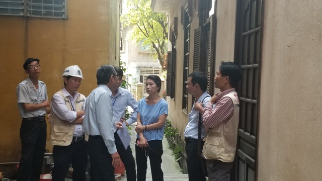 UBND phường, Thanh tra Sở Xây dựng, đơn vị thi công làm việc với bà Hà trong sáng 2/3