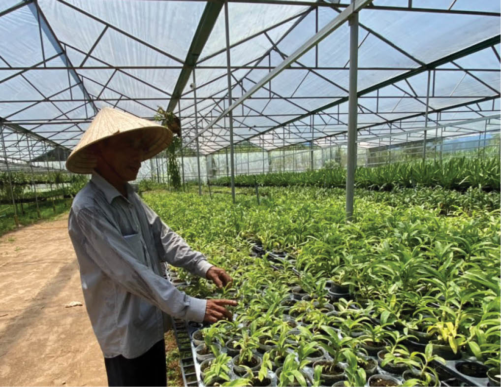 Anh Nguyễn Sinh chăm sóc vườn lan