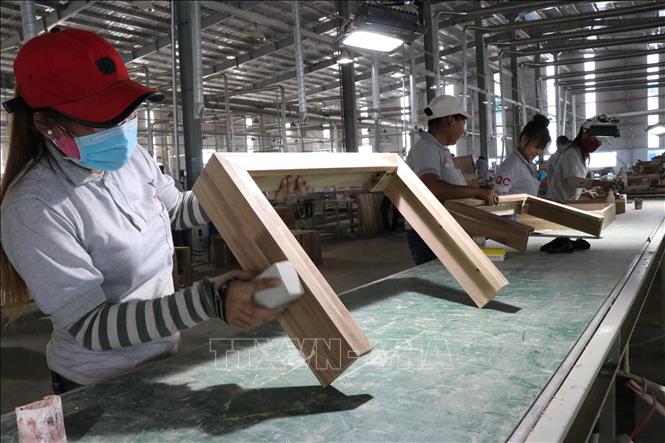 Đơn hàng xuất khẩu đồ gỗ của Công ty Triệu Phú Lộc (huyện Bắc Tân Uyên, Bình Dương) đã tăng gấp đôi từ đầu tháng 8 đến nay. Ảnh: Chí Tưởng/TTXVN