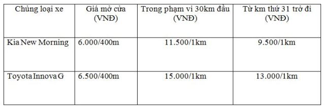 Bảng giá cước Taxi Hoàng Anh áp dụng tại chi nhánh Huế: