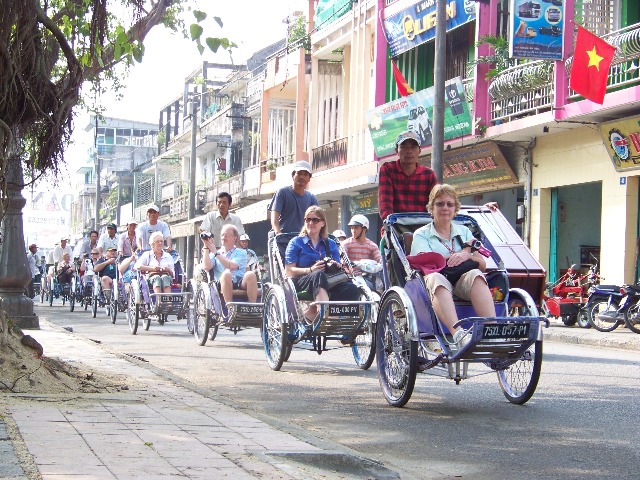 Xích lô là một phương tiện thuận tiện để du khách thăm thú Huế