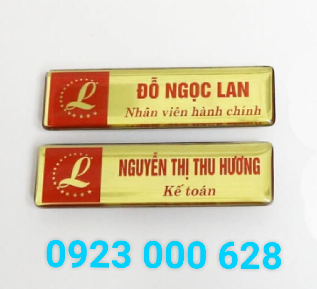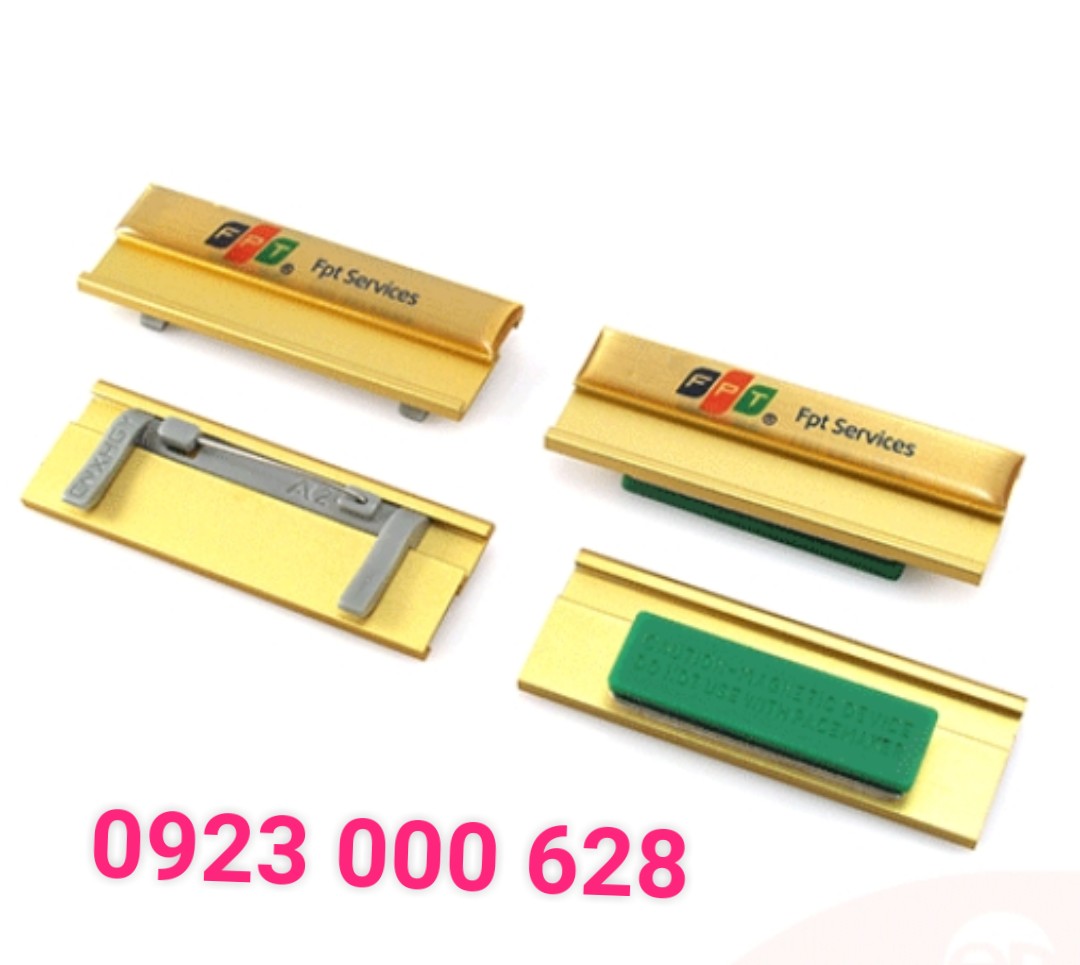 bảng tên nhân viên luôn được đảm bảo về độ bền và độ sắc nét từng chi tiết trên sản phẩm.Mỗi sản phẩm là một nghệ thuật luôn được chúng tôi dồn hết tâm huyết để đưa ra những sản phẩm tốt nhất, ngoài công nghệ ăn mòn đổ mầu,phủ thủy tinh hữu cơ , huy hiệu,biển tên còn được đúc nổi và mạ vàng thật 24k.