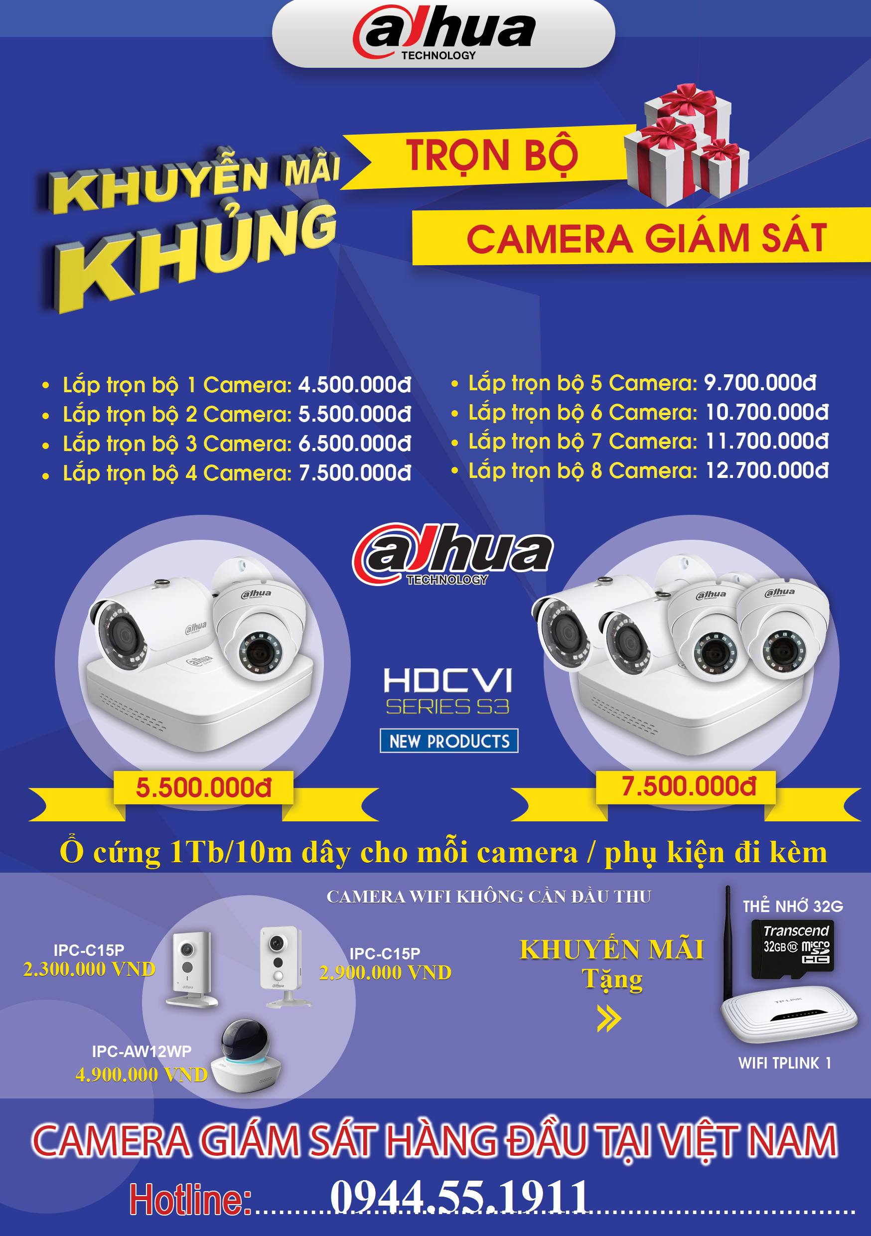 TRỌN GÓI CAMERA QUAN SÁT HD THƯƠNG HIỆU DAHUA BỘ 01 CAMERA : 5.000.000 BỘ 02 CAMERA : 6.000.000 BỘ 03 CAMERA : 7.000.000 BỘ 04 CAMERA : 8.000.000 Bao gồm: - 01-04 CAMERA HỒNG NGOẠI độ phân giải HD DAHUA 720P, 1.0 Megapixel - ĐẦU GHI HÌNH HD 4 kênh cao cấp chuẩn H.264. Xuất tín hiệu HDMI và VGA Full HD 1080P - NGUỒN 12V - HDD DUNG LƯỢNG 1000G - DÂY TÍN HIỆU VÀ JACK KẾT NỐI MIỄN PHÍ CÔNG LẮP ĐẶT - Ứng Dụng:- Văn phòng, cửa hàng, tiệm vàng, nhà riêng với các yêu cầu đặc biệt như nhận diện khuôn mặt người, nhận diện bảng số xe máy và ôtô và những nhu cầu hình ảnh sắc nét khác mà hệ thống camera analog ko đáp ứng được Chức năng : - Camera hỗ trợ xem hình ban đêm, ánh sáng yếu, bụi… - Đầu ghi hình có sẵn chức năng xem trực tuyến, playback, qua mạng Lan, Internet, Điện thoại di động, Iphone , - Nguồn tập trung nên có sự ổn định về điện sẽ đảm bảo tuổi thọ sản phẩm dài lâu - HDD 1000G cho thời gian lưu trữ lâu dài Bảo hành: 24 tháng (1 đổi 1) Demo sản phẩm tận nơi. Vui lòng liên hệ để biết thêm chi tiết (Quý khách có nhu cầu có thể yêu cầu tư vấn và khảo sát tận nơi) Công Ty TNHH MTV SI MA VIỆT NAM 1/156 Phan Chu Trinh_ TP Huế Điện thoại :054.3837057 .Hotline : 0944.551911 www.simavietnam.com