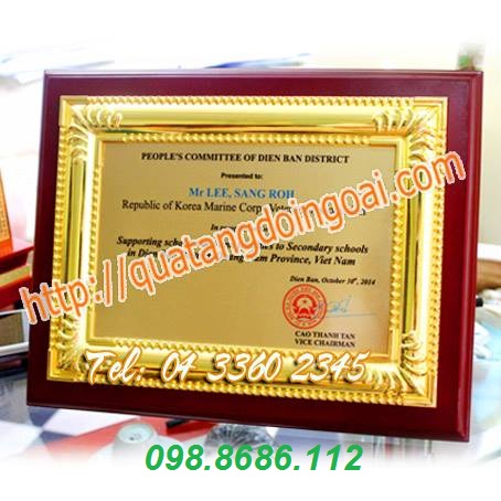 Bằng chứng nhận là sản phẩm không thể thiếu trong lễ vinh danh một cá nhân hay tập thể. Sản phẩm được làm từ gỗ, đồng, pha lê với chi tiết được làm sắc nét và tinh xảo. Bằng chứng nhận là cơ sở ghi dấu sự tôn vinh thành tích và chứng nhận những thành quả mà cá nhân hay tập thể đã đạt được. Bằng chứng nhận là sản phẩm quà tặng cao cấp được tặng nhằm nâng cao cảm xúc tự hào của cá nhân, qua đó cải thiện hiệu quả công việc hoặc gắn bó với tổ chức hơn. Sản phẩm cũng được coi là sự ghi dấu những đóng góp của một cá nhân hay tập thể trong việc gây quỹ vì lợi ích của cộng đồng. Chúng tôi tùy chỉnh bằng chứng nhận và tư vấn để khách hàng có sản phẩm đáp ứng hoàn toàn nhu cầu sử dụng và đem lại hiệu quả cáo. Bạn có thể lựa chọn một trong những hình ảnh bên dưới hoặc có thể liên lạc với chúng tôi để có sản phẩm chi tiết hơn. CÔNG TY QUÀ TẶNG MỸ NGHỆ VIỆT Người liên hệ: Lan Anh Hotline: 098 8686 112 Zalo: 01693 498 063 Email: hoanglananh992@gmail.com Website: quatangdoingoai.com, vfagift.net