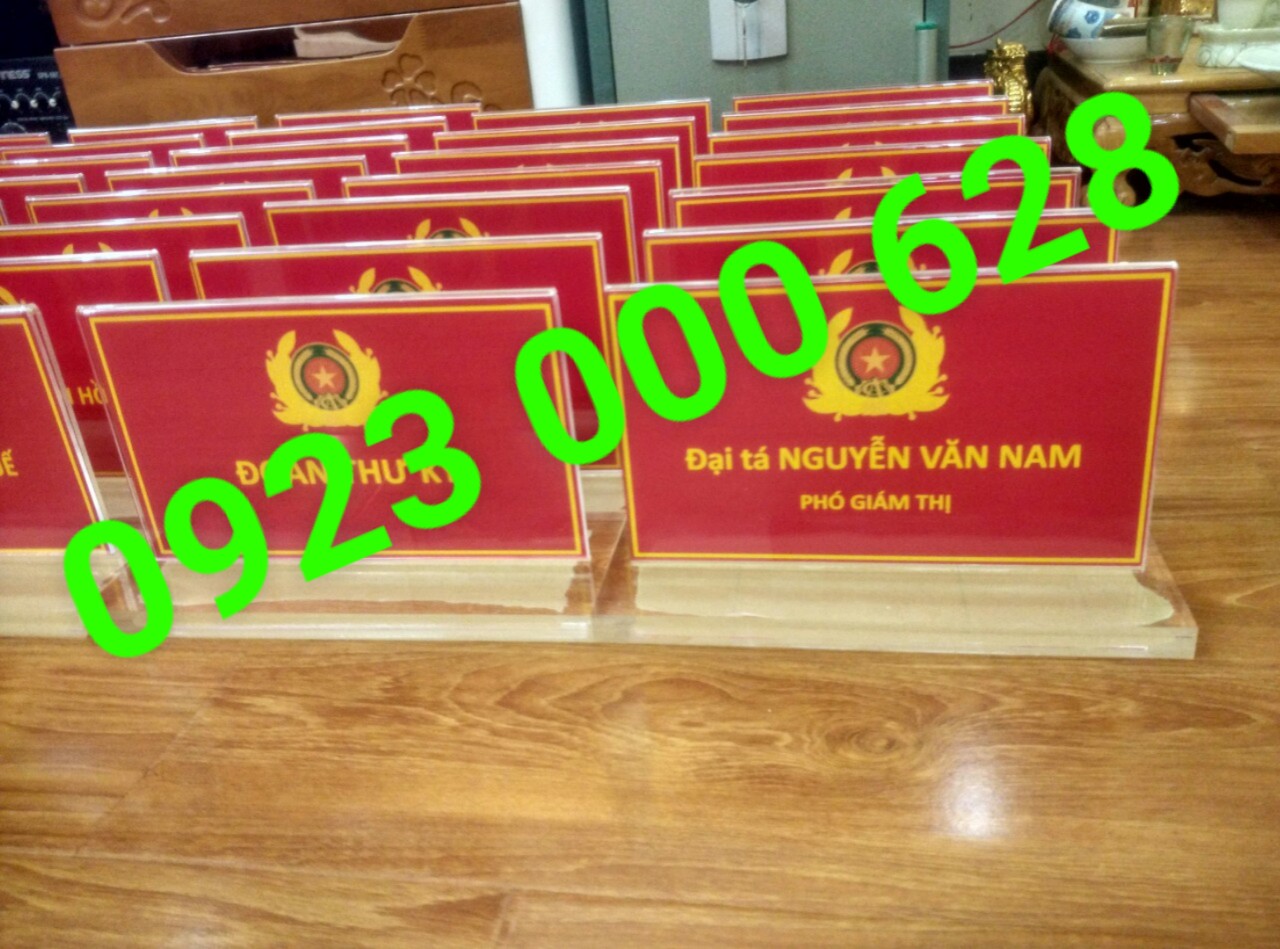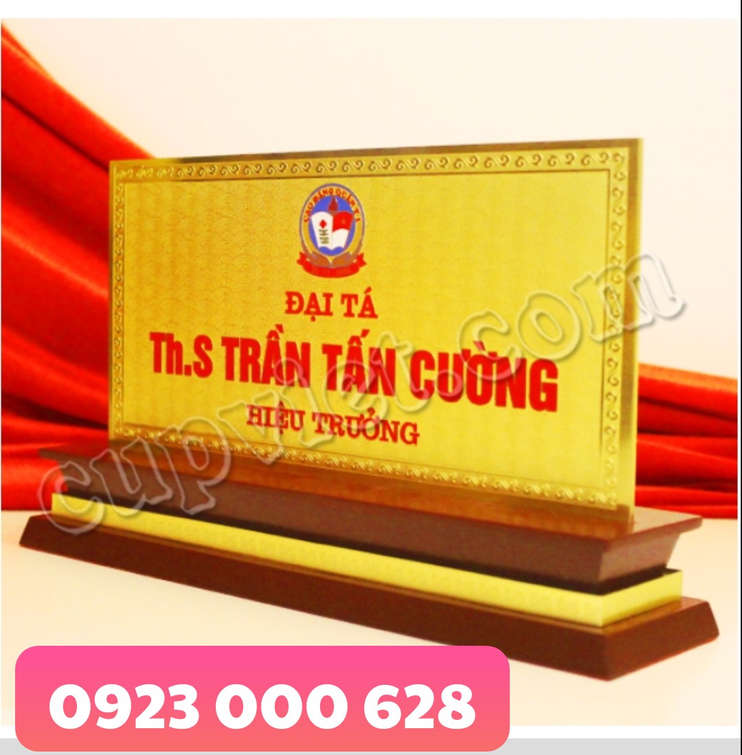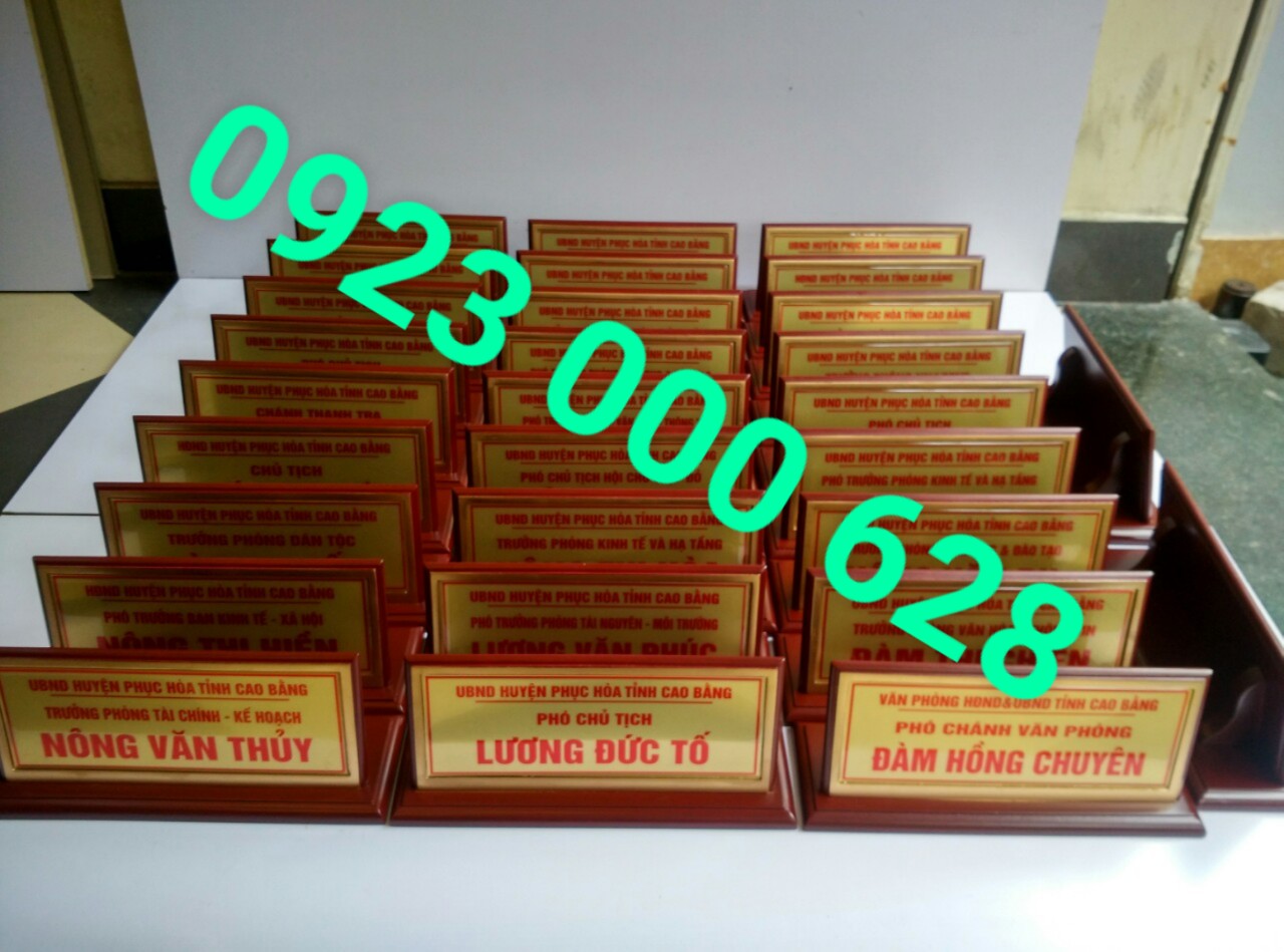 Chuyên cung cấp sỉ lẻ biển chức danh để bàn giá sản xuất trực tiếp. Bạn chỉ cần gọi điện và gửi thông tin chúng tôi sẽ tư vấn và thiết kế miễn phí. Với công nghệ ăn mòn điện phân kết hợp với mạ vàng 24k ,cùng công nghệ máy móc hiện đại đúc đồng theo yêu cầu, chúng tôi cho ra những sản phẩm đẹp nhất ,chất lượng nhất, phù hợp với chức danh và tương xứng với tầm vóc vị trí của Bạn.
