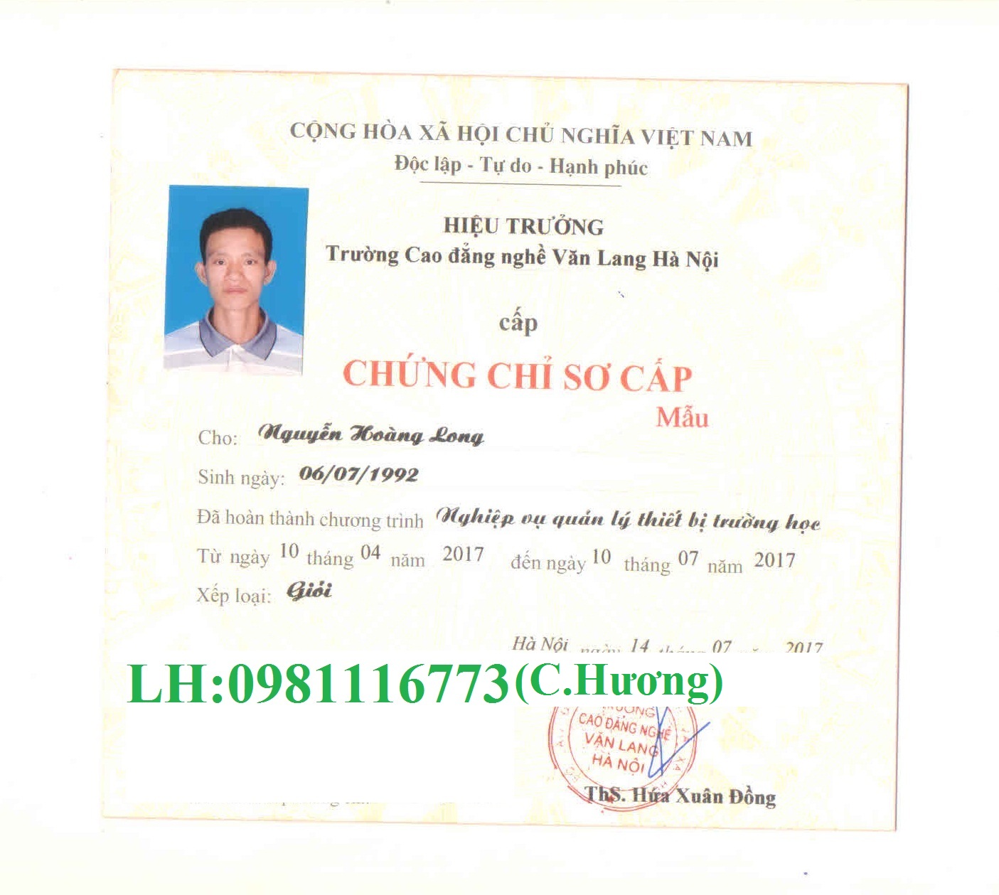 - Sau khoá học, những học viên đạt yêu cầu được cấp chứng chỉ Sơ cấp Nghiệp vụ Quản lý thiết bị trường học của Trường CĐ nghề Văn Lang HN.