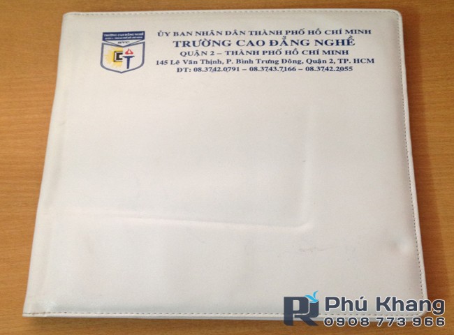 Cơ sở PHÚ KHANG Trực tiếp sản xuất bìa menu da, bìa simili và bìa giấy không qua trung gian: – Bìa menu nhà hàng – Café – Karaoke. – Bộ sản phẩm bọc da khách sạn – nhà hàng. – Bìa kẹp tính tiền. – Bìa đựng passport, bìa đựng bằng tốt nghiệp. – Bìa hồ sơ, bìa trình ký. – Sản xuất sổ tay. – Các sản phẩm được sản xuất trên chất liệu da, simili, PU… – In logo, ép nhiệt logo theo yêu cầu. Sản phẩm được in hoặc ép nhiệt nội dung theo yêu cầu. Bìa trình ký được sử dụng rất phổ biến cho các công ty hiện nay, vì bìa đem lại sự tiện lợi để lưu trữ hồ sơ, tài liệu quan trọng, và mang đến sự chuyên nghiệp khi sử dụng gặp đối tác. Thiết kế và lên mẫu cho khách duyệt trước khi sản xuất. Mọi chi tiết xin liên hệ để được báo giá tốt nhất: ———————————————- ĐẮC PHÚ Hotline: 0908 773 966 – 0918 663 977 Email: phukhangqt@gmail.com Email: dacphu077@gmail.com Facebook/cosobiada Website: 68gifts.com ———————————————- Cơ Sở PHÚ KHANG ĐC: 109/5/9 TX22 (Thạnh Xuân 22), P .Thạnh Xuân, Q.12 Skype: dacphu077
