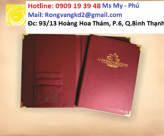 CTY RỒNG VÀNG / Sản xuất bìa simili – Bìa Menu – Bìa tính tiền – bìa đựng bằng – Ví namecard - ví nam – ví nữ - ví đựng hộ chiếu - ví du lịch.. Đ/c : 93/13 Hoàng Hoa Thám, P.6, Bình Thạnh, Tp.HCM Email: rongvangkd2@gmail.com https://www.facebook.com/cososanxuatbiasimili/ Website: www.Thom.vn (Tell, zalo, viber): 0909 19 39 48 Công Ty chúng tôi chuyên sản xuất các mặt hàng simili, da. Giả da..như: Bìa menu: khổ A3, A4, A5, Khổ theo yêu cầu khác Bìa tính tiền: khổ chuẩn Bìa note: gặp gắng nam châm, bút viết Bìa hồ sơ: bìa còng, ép.. Bìa trình ký: còng, gập.. Bìa nhựa trong đựng giấy tờ Nhận in ấn, ép logo theo yêu cầu Chi tiết liên hệ: CTY RỒNG VÀNG / Sản xuất bìa simili – Bìa Menu – Bìa tính tiền – bìa đựng bằng – bìa Đ/c : 93/13 Hoàng Hoa Thám, P.6, Bình Thạnh, Tp.HCM Điện thoại: 08 38 41 0632 – fax: 08 38 41 0631 Email: rongvangkd2@gmail.com Website: www.Thom.vn Facebook: https://www.facebook.com/cososanxuatbiasimili/ (Tell, zalo, viber): 0909 19 39 48