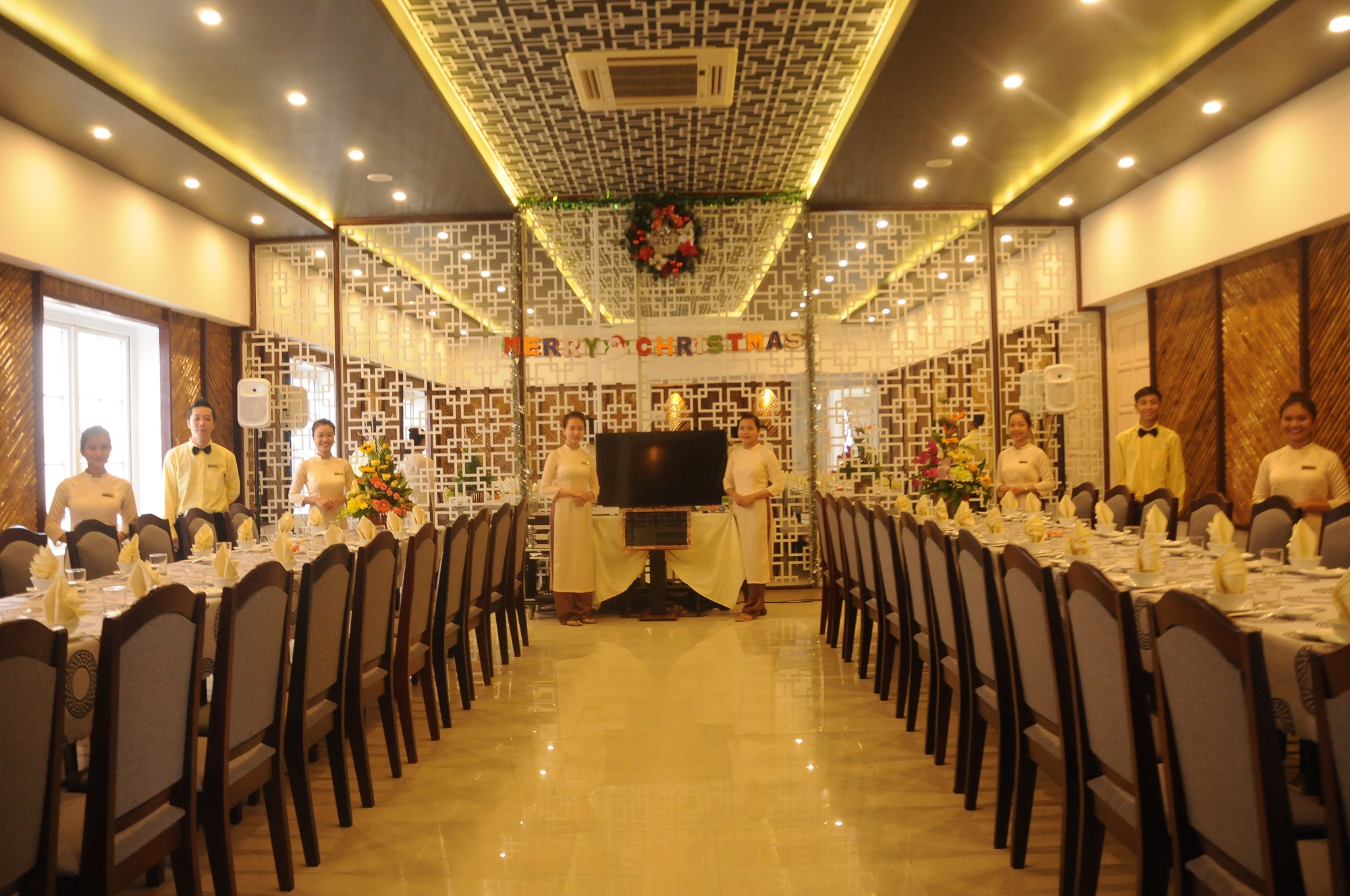 Nhà hàng Queen Palace Huế tọa lạc tại một góc nhỏ Vỹ Dạ - nơi mà từ lâu đã rất nổi tiếng với cảnh sắc thơ mộng hữu tình, thấm đượm màu sắc văn hóa của miền đất Cố Đô. Với khung cảnh sang trọng, lịch sự cùng với sự đầu tư quy mô với diện tích tổng cộng khoảng 1000m2 , nhà hàng được thiết kế theo phong cách của Hoàng Gia Châu Âu xen lẫn những biểu tượng và những nét chấm phá của triều đại nhà Nguyễn sẽ là một trong những lựa chọn mang lại giá trị và sự thỏa mãn tối đa cho du khách khi du lịch đến Huế cùng bạn bè, người thân. Hoạt động với mong muốn được cung cấp sản phẩm dịch vụ nhà hàng du lịch chất lượng cho du khách khi đến với thành phố Huế. Nhà hàng đã tận dụng tối đa lợi thế về mặt không gian vào đầu tư hai đại sảnh sang trọng và đẳng cấp với sức chứa lên đến 600 người. Tất cả đều được trang bị đầy đủ hệ thống âm thanh, ánh sáng, thiết bị thông tin liên lạc cùng nội thất cao cấp và hiện đại. Đại sảnh đầu tiên là hội trường với sức chứa khoảng 350 chỗ ngồi sẵn sàng phục vụ cho các đoàn du lịch với quy mô lớn. Sảnh thứ hai gồm các phòng Vip như: Phòng Bamboo với sức chứa khoảng 72 khách; phòng Cơm Vua với sức chứa khoảng 54 khách và 4 loại phòng nhỏ khác nhau dành cho 4-15 khách. Ngoài ra nhà hàng còn có một bãi giữ xe rộng nằm kề bên với sức chứa khoảng 5 xe 64 chỗ, cùng đội ngũ nhân viên nhiệt tình được đào tạo chuyên nghiệp luôn sẵn sàng phục vụ tối đa nhu cầu của du khách. Nhà hàng Queen Palace cũng thường diễn ra các chương trình ca Huế nhằm giới thiệu cho du khách về di sản văn hóa phi vật thể độc đáo của vùng đất Cố Đô. Hay du khách cũng có thể tổ chức các chương trình Gala dinner cùng ban nhạc Selanat chuyên nghiệp, hoặc có thể lựa chọn hình thức giải trí “Live show Singing” được hỗ trợ bởi dàn âm thanh chân thực, sống động. Thêm nữa, sản phẩm Cơm Vua cùng những nghi lễ văn hóa của kinh đô Huế xưa cũng là một trong những điều làm nhà hàng tự hào để giới thiệu với các du khách. Chúng tôi cam kết về đội ngũ được tuyển chọn kỹ lưỡng với phong cách phục vụ chuyên nghiệp, chu đáo và lịch sự. Huế Queen Palace luôn phấn đấu để ngày càng cải thiện hoàn hảo hơn nữa về “chất lượng món ăn” và “dịch vụ” góp phần đưa hình ảnh của Queen Palace trở nên thân quen trong lòng du khách. Thư ngỏ này như một lời giới thiệu chân thành gửi đến quý Đối Tác, hy vọng Anh Chị sẽ lựa chọn hợp tác với nhà hàng để cùng nhau mang lại những sản phẩm du lịch tốt nhất cho du khách. Một lần nữa, xin chân thành cảm ơn thời gian và sự quan tâm của Anh Chị. Chúc Anh Chị và quý Công Ty luôn luôn hạnh phúc và thịnh vượng. Để thông tin, thương lượng về dịch vụ quý Anh Chị Đối Tác vui lòng liên hệ trực tiếp: Quan Nguyen (Mr.) Nguyen Huong Thao (Ms.) Sales Executive Sales Executive Cell: 090 148 9 148 Cell: 0901 97 61 81 Skype: sales.queenpalacehue Email: sales.queenpalacehue@gmail.com