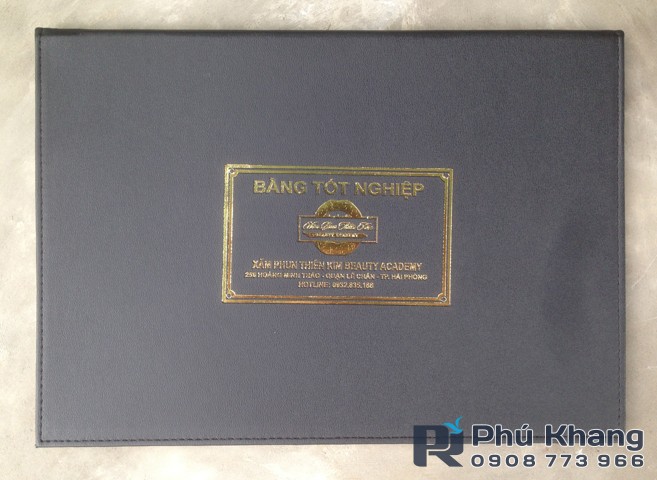 Công ty PHÚ KHANG 0908 773 966 – 0918 663 977 Trực tiếp in ấn và sản xuất các sản phẩm bìa tốt nghiệp da, simili và bìa giấy không qua trung gian: –Bìa menu nhà hàng – Café – Karaoke. –Bìa đựng chứng chỉ. –Bìa đựng giấy khen. –Bìa kẹp bằng tốt nghiệp. –Bìa tốt nghiệp. –Bìa kẹp hồ sơ, bìa trình ký. –Bìa sổ còng, sổ dán. Kích thước sản phẩm, in và ép nội dung theo yêu cầu. Mọi chi tiết bìa đựng bằng tốt nghiệp xin liên hệ báo giá ————————- ĐẮC PHÚ Hotline: 0908 773 966 – 0918 663 977 Email: phukhangqt@gmail.com Email: dacphu077@gmail.com Facebook/cosobiada Website: 68gifts.com ———————————————- CTy TNHH Đầu Tư Sản Xuất Phát Triển TM PHÚ KHANG ĐC: 109/5/9 TX22 (Thạnh Xuân 22), P .Thạnh Xuân, Q.12 Skype: dacphu077