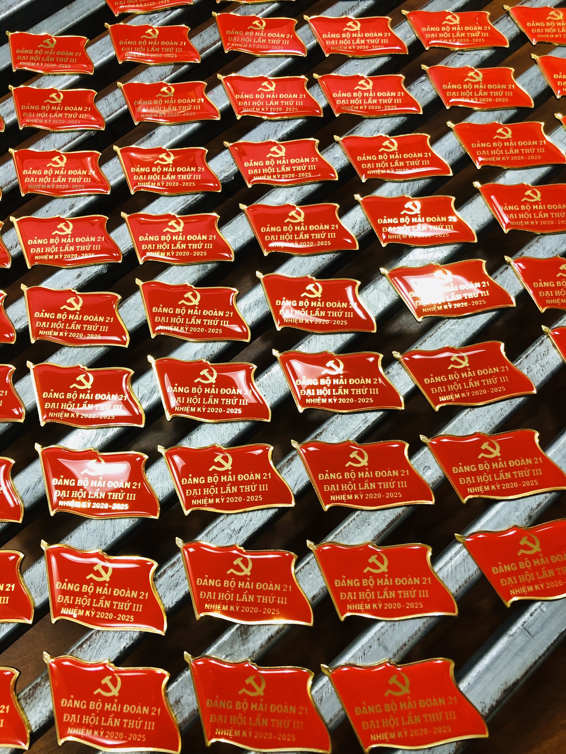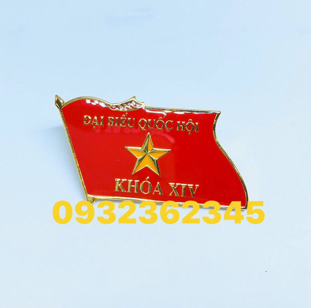 Với chất liệu huy hiệu được sản xuất từ kim loại mạ vàng bền đẹp, đổ màu đỏ chữ vàng làm nổi bật chiếc phù hiệu cài áo. Mang trên ngực huy hiệu lá cờ cũng là niềm tự hào của Quý Đại Biểu.