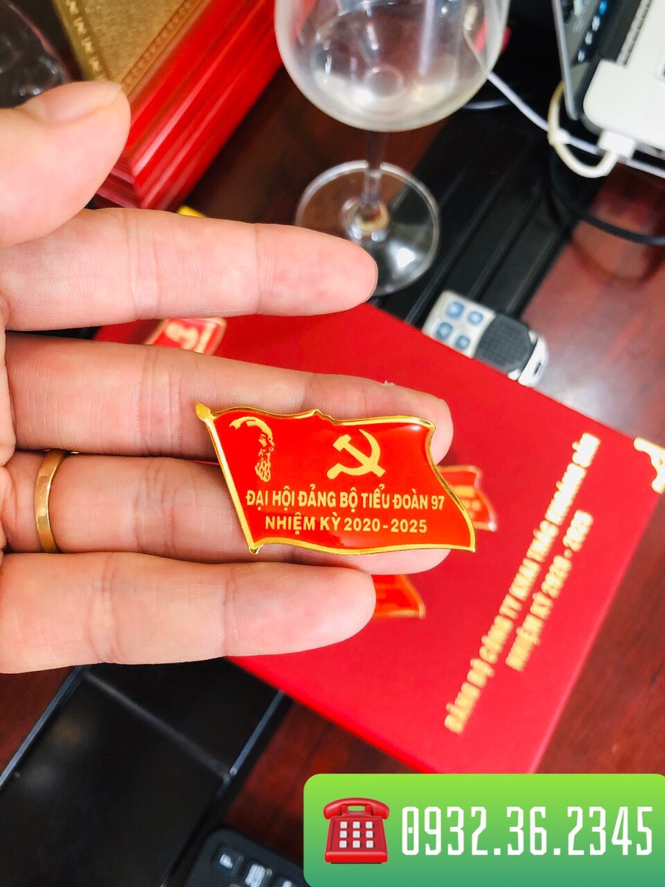 Sản xuất huy hiệu lá cờ đeo ngực cho đại hội đảng, Huy hiệu đại biểu hội đồng nhân dân, ủy ban nhân dân bằng đồng. Huy Hiệu Đồng Mạ Vàng Cờ Đỏ Sao Vàng được làm từ chất liệu đồng mạ vàng cao cấp, thiết kế hình vuông mô phỏng theo hình ảnh của lá cờ đỏ sao vàng -biểu tượng thiêng liêng của Tổ Quốc. Huy hiệu này thường được dùng làm quà tặng cho người tham dự các Đại hội như một món quà tinh thần biểu trưng đại diện cho một cơ quan, tổ chức hoặc được sử dụng trong sự kiện bất kì của các cơ quan Đảng, Nhà nước.