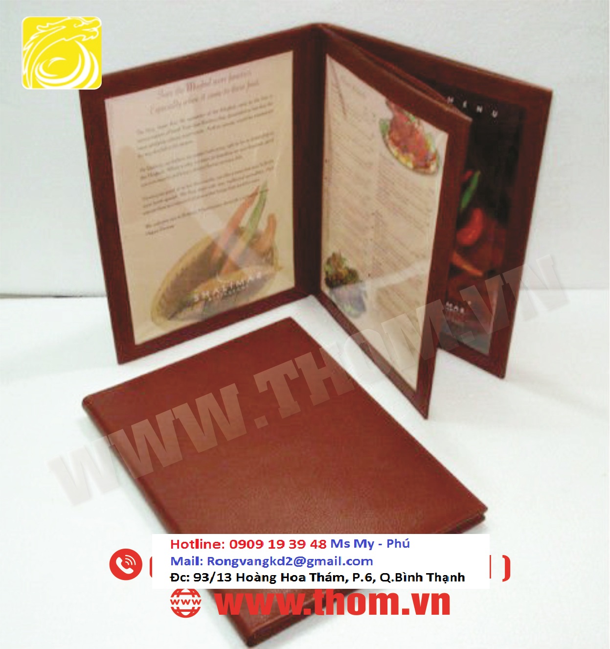 CTY RỒNG VÀNG / Sản xuất bìa simili – Bìa Menu – Bìa tính tiền – bìa đựng bằng – Ví namecard - ví nam – ví nữ - ví đựng hộ chiếu - ví du lịch.. Đ/c : 93/13 Hoàng Hoa Thám, P.6, Bình Thạnh, Tp.HCM Email: rongvangkd2@gmail.com https://www.facebook.com/cososanxuatbiasimili/ Website: www.Thom.vn (Tell, zalo, viber): 0909 19 39 48 Công Ty chúng tôi chuyên sản xuất các mặt hàng simili, da. Giả da..như: Bìa menu: khổ A3, A4, A5, Khổ theo yêu cầu khác Bìa tính tiền: khổ chuẩn Bìa note: gặp gắng nam châm, bút viết Bìa hồ sơ: bìa còng, ép.. Bìa trình ký: còng, gập.. Bìa nhựa trong đựng giấy tờ Nhận in ấn, ép logo theo yêu cầu - Bìa Menu , cuốn menu, quyển menu, menu nhà hàng, menu quán ăn, menu - Bìa Karaoke , bìa trình ký, bìa đựng hồ sơ, bìa tính tiền, bìa còng, bìa kẹp - Bìa bill Tính Tiền… - Sổ tay đóng còng, lò xo, đóng gáy - Sổ bìa da, simili, giấy, PU - Sản xuất bìa menu với chất liệu: simili, giả da, da thật,.. - in ấn, thiết kế theo yêu cầu khách hàng như ép nhủ, kép lụa logo, slogan.. ĐẶT BIỆT LÀ CÔNG TY CHUYÊN LÀM BÌA ĐỰNG BẰNG TỐT NGHIỆP CHO CÁC TRƯỜNG CAO ĐẲNG, ĐẠI HỌC TRÊN TOÀN QUỐC Như : Đại học Y Dược, Đại Học Bình Dương, Đại Học Hoa Sen, Đại Học Kinh Tế….. Chi tiết liên hệ: CTY RỒNG VÀNG / Sản xuất bìa simili – Bìa Menu – Bìa tính tiền – bìa đựng bằng – bìa Đ/c : 93/13 Hoàng Hoa Thám, P.6, Bình Thạnh, Tp.HCM Điện thoại: 08 38 41 0632 – fax: 08 38 41 0631 Email: rongvangkd2@gmail.com Website: www.Thom.vn Facebook: https://www.facebook.com/cososanxuatbiasimili/ (Tell, zalo, viber): 0909 19 39 48