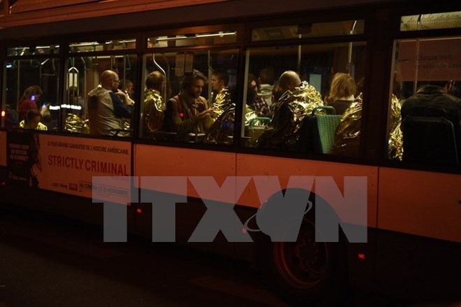 Lực lượng cứu hộ sơ tán người dân gần hiện trường vụ tấn công ở nhà hát Bataclan ngày 13/11. (Nguồn: AFP/TTXVN)