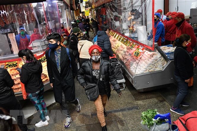 Người dân mua sắm lương thực tại một khu chợ ở thủ đô Santiago, Chile. Ảnh minh họa: THX/TTXVN