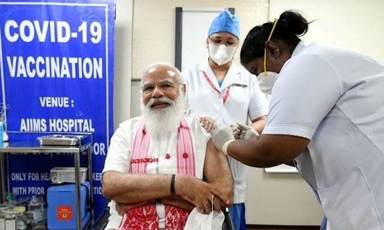 Thủ tướng Ấn Độ Narendra Modi tiêm vaccine Covid-19 tại thủ đô New Delhi ngày 1/3. Ảnh: Reuters
