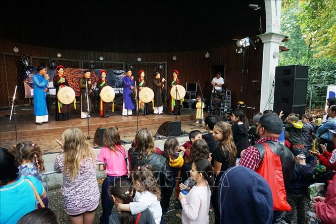 Tiết mục "Hát đối" của cộng đồng Việt Nam. Ảnh: Hồng Kỳ/PV TTXVN tại CH Séc