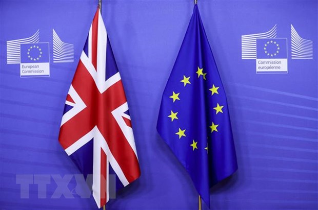 Quốc kỳ Anh (trái) và cờ Liên minh châu Âu (EU). Ảnh: AFP/TTXVN
