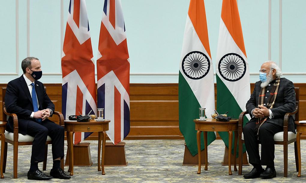 Ngoại trưởng Anh Dominic Raab (trái) trong cuộc gặp với Thủ tướng Ấn Độ Narendra Modi tại New Delhi hồi tháng 12/2020. Ảnh: Twitter/Narendra Modi
